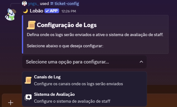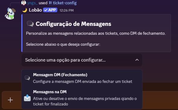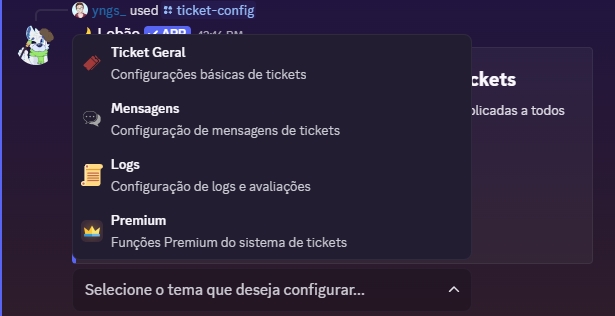 O comando /ticket-config configura um painel de atendimento em seu servidor, que possui diversas funções como um painel totalmente personalizável, entre outros que serão citados posteriormente.