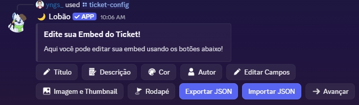 A opção editar painel, é a opção que você irá mais utilizar para personalizar da forma que você quiser o sistema de tickets do Lobão.
